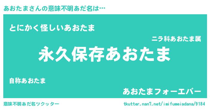 | 男性向けラノベタイトル風あだ名 | 『あおたまという概念が存在しない退屈な世界 』 |