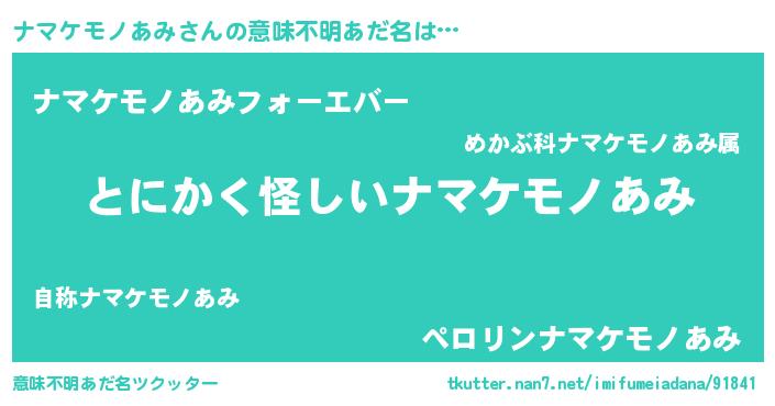 | 女子向けラノベタイトル風あだ名 | 『ナマケモノあみの卵を拾いまして』 |