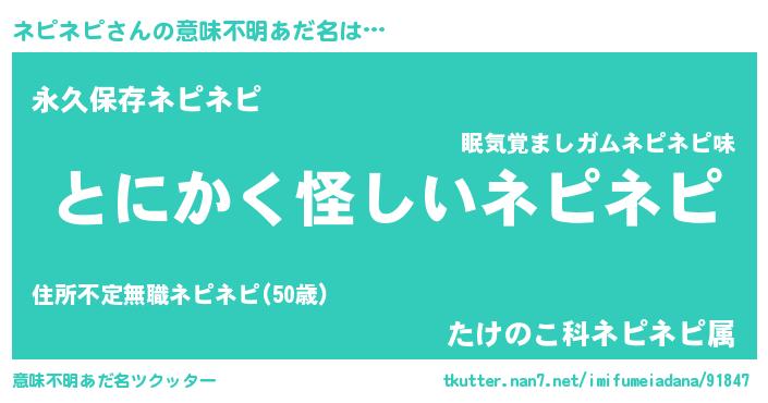 | ファンタジー風あだ名 | 『ファントムネピス』『ネピディッシュ』 |