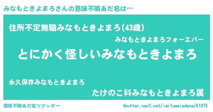 | 伝説のあだ名 | 『解き放たれた遊び人みなもときよまろ』 |