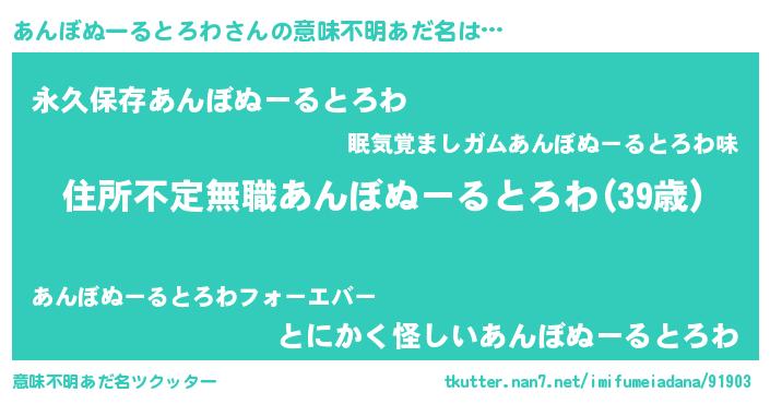 | 欧米人風あだ名 | 『ダレノガレあんぼぬーるとろわ』 |