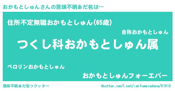 | 男性向けラノベタイトル風あだ名 | 『うちのおかもとしゅんが世界を掌握している!』 |