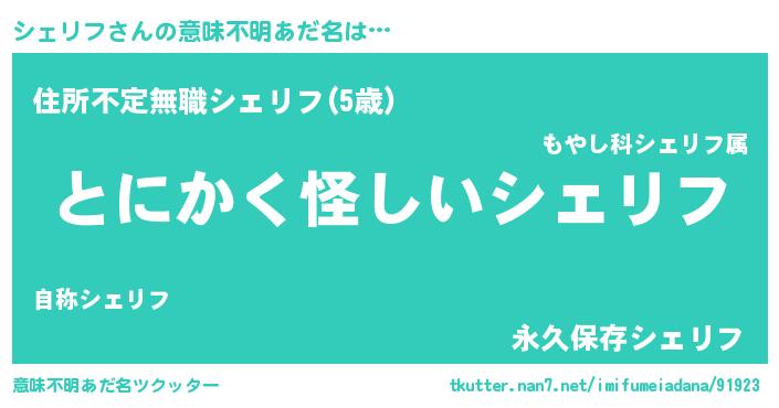 | ヘコむあだ名 | 『シェっぺ』『シェリフ(小並感)』 |