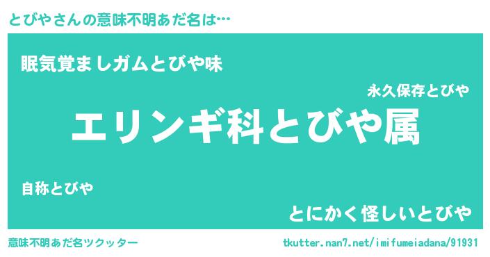 | ヘコむあだ名 | 『とびぷりん』『とびや(震え声)』 |