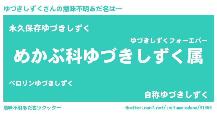 | ヘコむあだ名 | 『ゆづきしずく(遠い目)』『レバニラ』 |