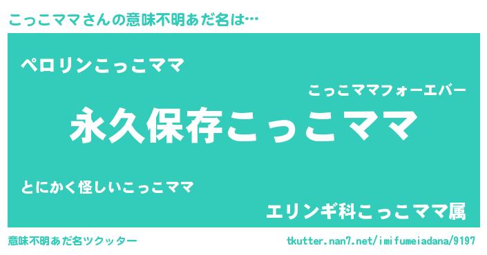 | 男性向けラノベタイトル風あだ名 | 『こっこママという概念が存在しない退屈な世界 』 |