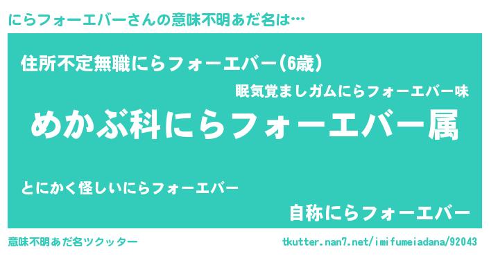 | 料理風あだ名 | 『にらフォーエバーごはん』 |