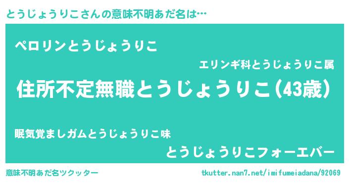 | 2回繰り返すあだ名 | 『じんじん』『とうとう』『ととうう』 |