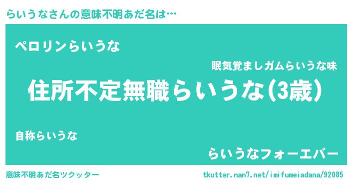 | 自動車の名前っぽいあだ名 | 『ラウディ』『ライティマ』『ランR』 |