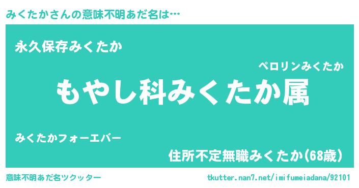 | 男性向けラノベタイトル風あだ名 | 『転生したらみくたかだった件』 |
