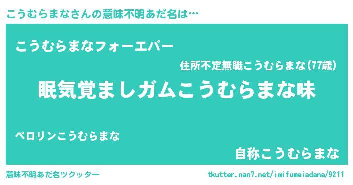 | ヒーロー風カッコイイあだ名 | 『正義の使者こうむらまな』 |