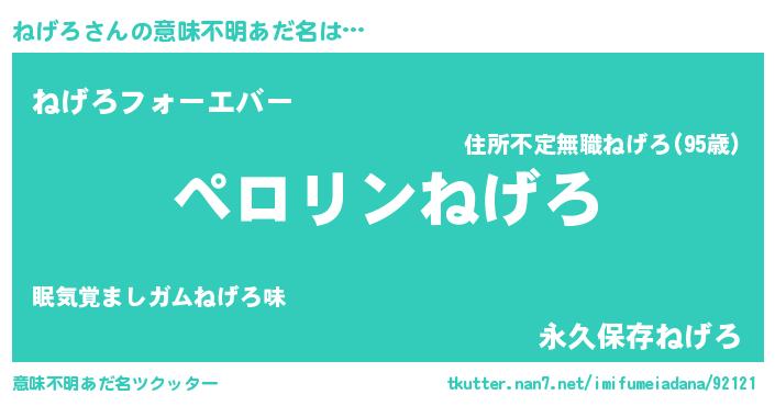| ヒーロー風カッコイイあだ名 | 『スーパーネゲロ』『ウルトラねげろマン』 |