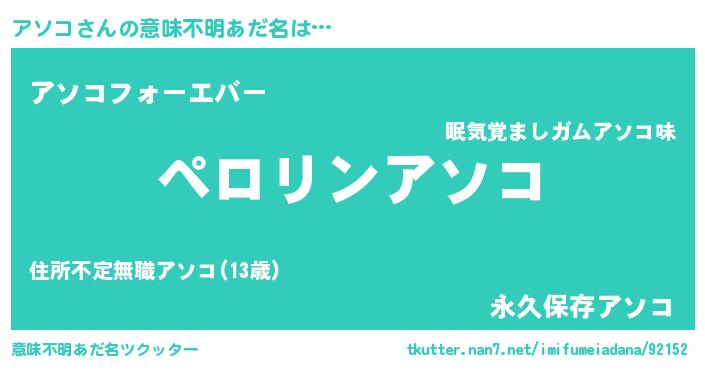 | ファンタジー風あだ名 | 『アソフェル』『エターナルアソコー』 |
