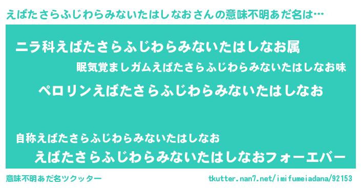 | 欧米人風あだ名 | 『マイケルえばたさらふじわらみないたはしなお』 |