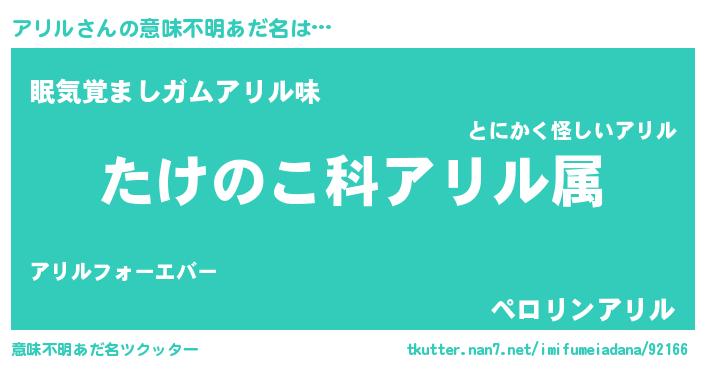 | ヒーロー風カッコイイあだ名 | 『愛の使者アリル』『スーパーアリル』 |