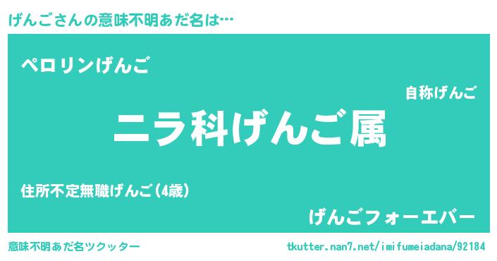 | 男性向けラノベタイトル風あだ名 | 『げんご~年齢イコール彼女いない歴の魔法使い~』 |