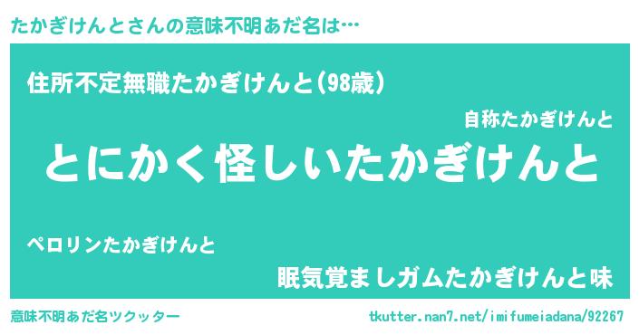 | 欧米人風あだ名 | 『たかぎけんと・ステッグマイヤー』 |