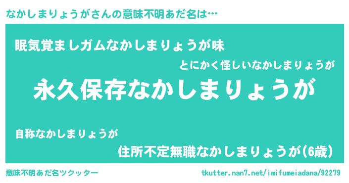 | 胡散臭い通販商品みたいなあだ名 | 『来世でも幸せになれる水素水…その名も「なかしまりょうが」』 |