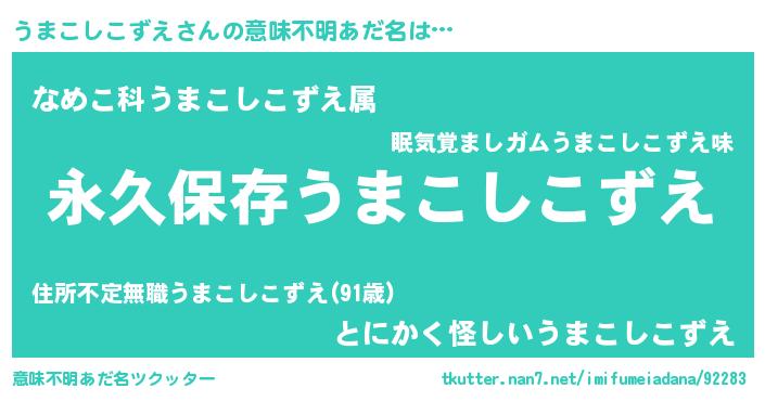 | 胡散臭い通販商品みたいなあだ名 | 『前代未聞の水素水…その名も「うまこしこずえ」』 |