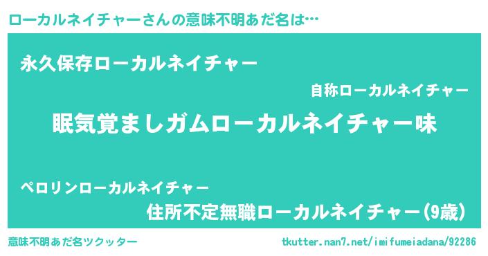 | 男性向けラノベタイトル風あだ名 | 『うちのローカルネイチャーが世界を掌握している!』 |