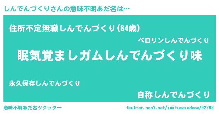 | 男性向けラノベタイトル風あだ名 | 『しんでんづくりに滅ぼされるだけの簡単なお仕事です』 |