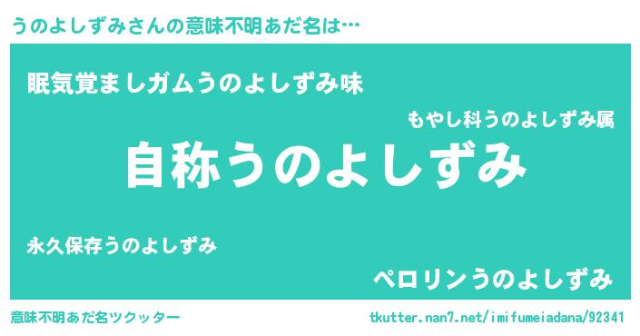 | 女子向けラノベタイトル風あだ名 | 『うのよしずみなんてお断りですっ。』 |