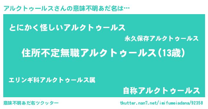 | ヘコむあだ名 | 『アル太郎』『アルクトゥールス(笑)』 |