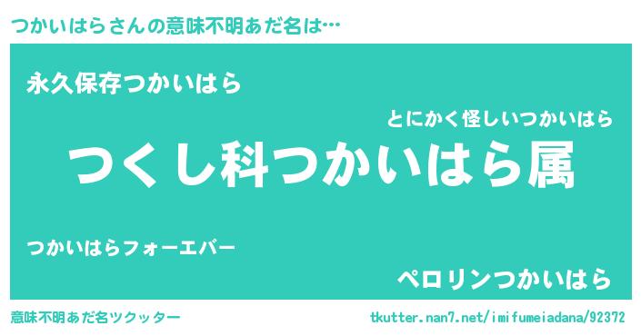 | ヘコむあだ名 | 『つかいはら(爆)』『つかっふぃ~』 |