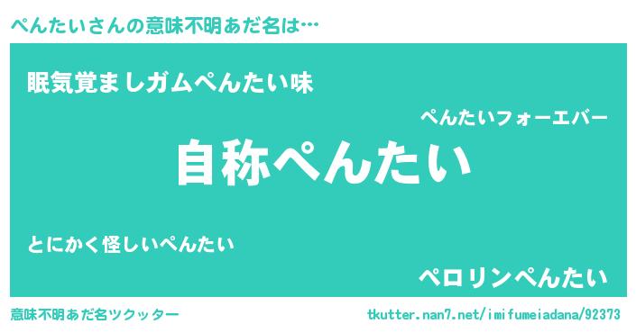 | 女子向けラノベタイトル風あだ名 | 『闇のぺんたい』『ぺんたいの雑貨屋さん』 |