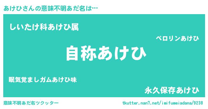 | 肩書あだ名 | 『あけひ総統』『あけひ上級大将』 |
