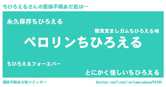 | 胡散臭い通販商品みたいなあだ名 | 『モテモテ間違いなし霊験あらたかなお札…その名も「ちひろえる」』 |