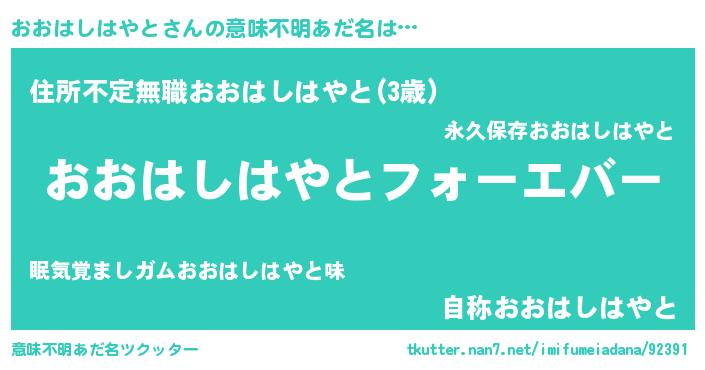 ヘコむあだ名 | 『なまこ酢』『おおはしはやと(小並感)』 |