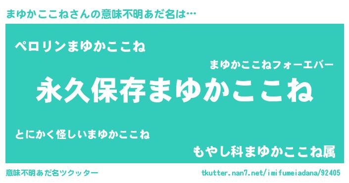 | 胡散臭い通販商品みたいなあだ名 | 『絶対に幸福をもたらす招き猫…その名も「まゆかここね」』 |