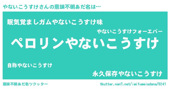 | 男性向けラノベタイトル風あだ名 | 『やないこうすけの憂鬱』 |