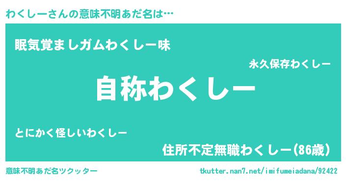 | 女子向けラノベタイトル風あだ名 | 『闇のわくしー』 |