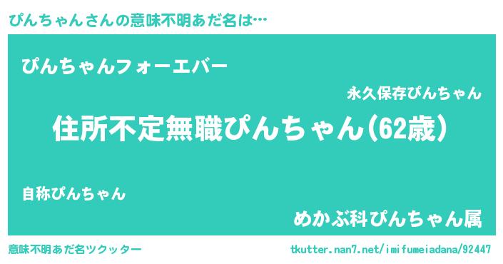 | ヘコむあだ名 | 『なまこ酢』『ぴんちゃん(小並感)』 |