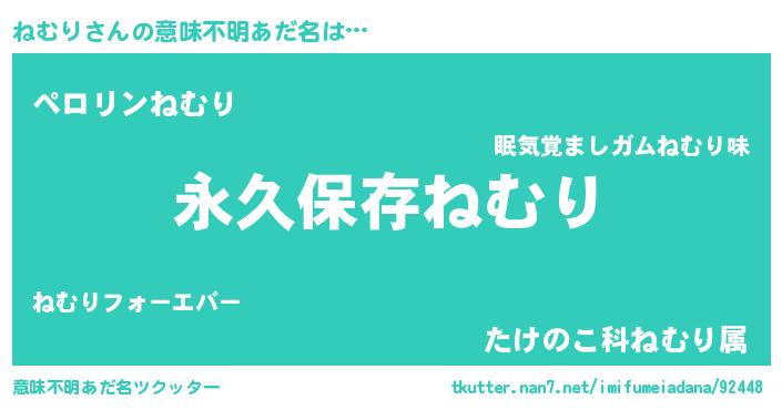 | ヘコむあだ名 | 『ねむり(爆)』『ねむもー』『豆乳』 |