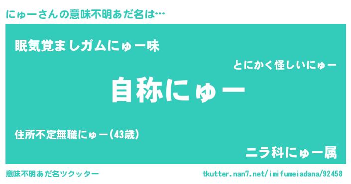 | ヒーロー風カッコイイあだ名 | 『超時空戦士ニュー』『天空の使者にゅー』 |
