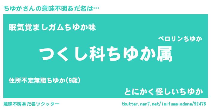 | ヒーロー風カッコイイあだ名 | 『慈愛の使者ちゆか』『天弓騎士チユ』 |