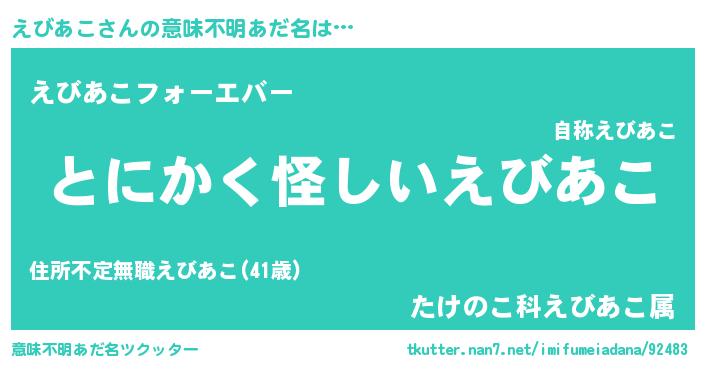 | 欧米人風あだ名 | 『ウサインえびあこ』 |