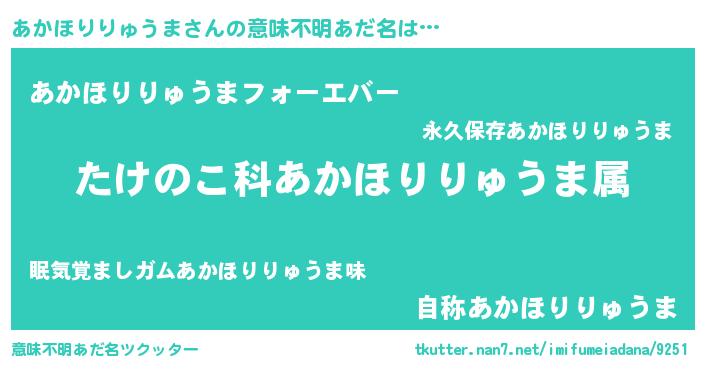 | 料理風あだ名 | 『あかほりりゅうまごはん』 |