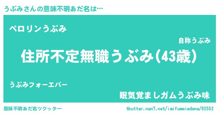 | ヒーロー風カッコイイあだ名 | 『仮面ウブダー』『スーパーウブミ』 |