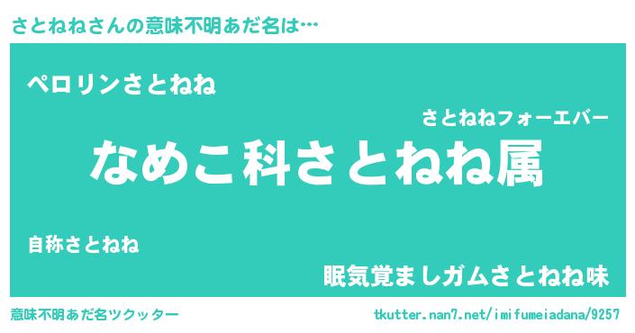 | 男性向けラノベタイトル風あだ名 | 『さとねねに滅ぼされるだけの簡単なお仕事です』 |