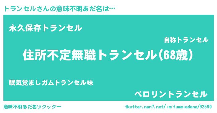 | ヘコむあだ名 | 『トランセル(苦笑)』『トラもー』 |