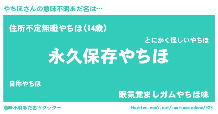 | 胡散臭い通販商品みたいなあだ名 | 『前代未聞の健康食品…その名も「やちほ」』 |