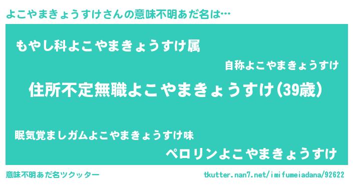 | 欧米人風あだ名 | 『ダレノガレよこやまきょうすけ』 |