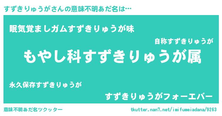 | ヒーロー風カッコイイあだ名 | 『慈愛の使者すずきりゅうが』 |