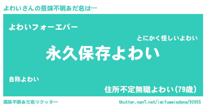 | 欧米人風あだ名 | 『ダルビッシュよわい』『ウサインよわい』 |