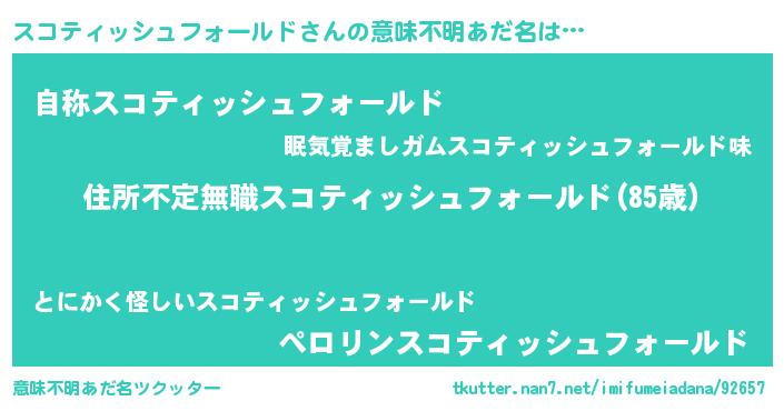 | 欧米人風あだ名 | 『ダレノガレスコティッシュフォールド』 |