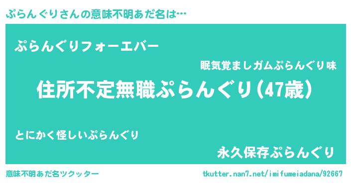 | ヒーロー風カッコイイあだ名 | 『仮面プラダー』『ネオプラングリ』 |